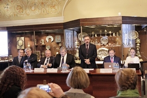 Пресс-конференция Ответственного секретаря Комиссии России по делам ЮНЕСКО Г.Э.Орджоникидзе и Первого заместителя председателя КГИОП Санкт-Петербурга А.В.Комлева, 12 июля 2012 г